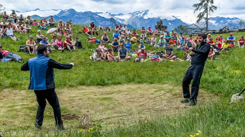 La prima compagnia teatrale professionale che coniuga teatro, montagna e natura. I nostri palcoscenici, oltre che i teatri cittadini, sono rifugi alpini, prati, cime, sezioni cai e sat, palestre di arrampicata...insomma: la montagna e tutti i suoi luoghi.