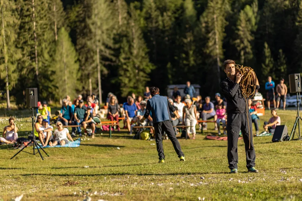 La prima compagnia teatrale professionale che coniuga teatro, montagna e natura. I nostri palcoscenici, oltre che i teatri cittadini, sono rifugi alpini, prati, cime, sezioni cai e sat, palestre di arrampicata...insomma: la montagna e tutti i suoi luoghi.